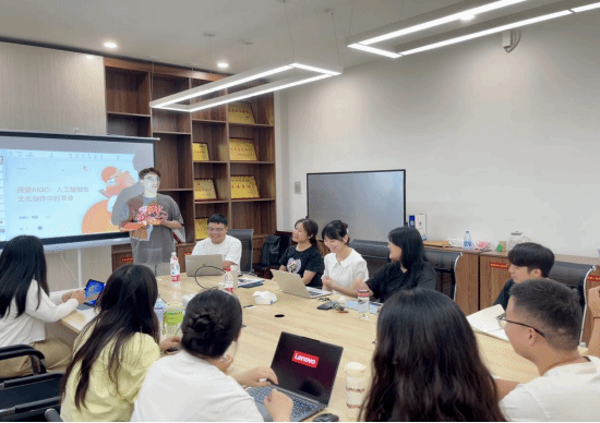 授课过程中,毛超首先介绍了AIGC的定义、技术基础和发展过程,然后使用Kimi等AI工具从文学创作、音乐创作、图片创作和视频创作四个方面展示了AIGC在文化创作中的应用案例。并通过现场演示和图文并茂的描述为同学们解读了传统动画的整个生产流程,同时通过大量案例多角度展示了AIGC和传统动画的制作差异,并对两者的优缺点进行了横向对比。