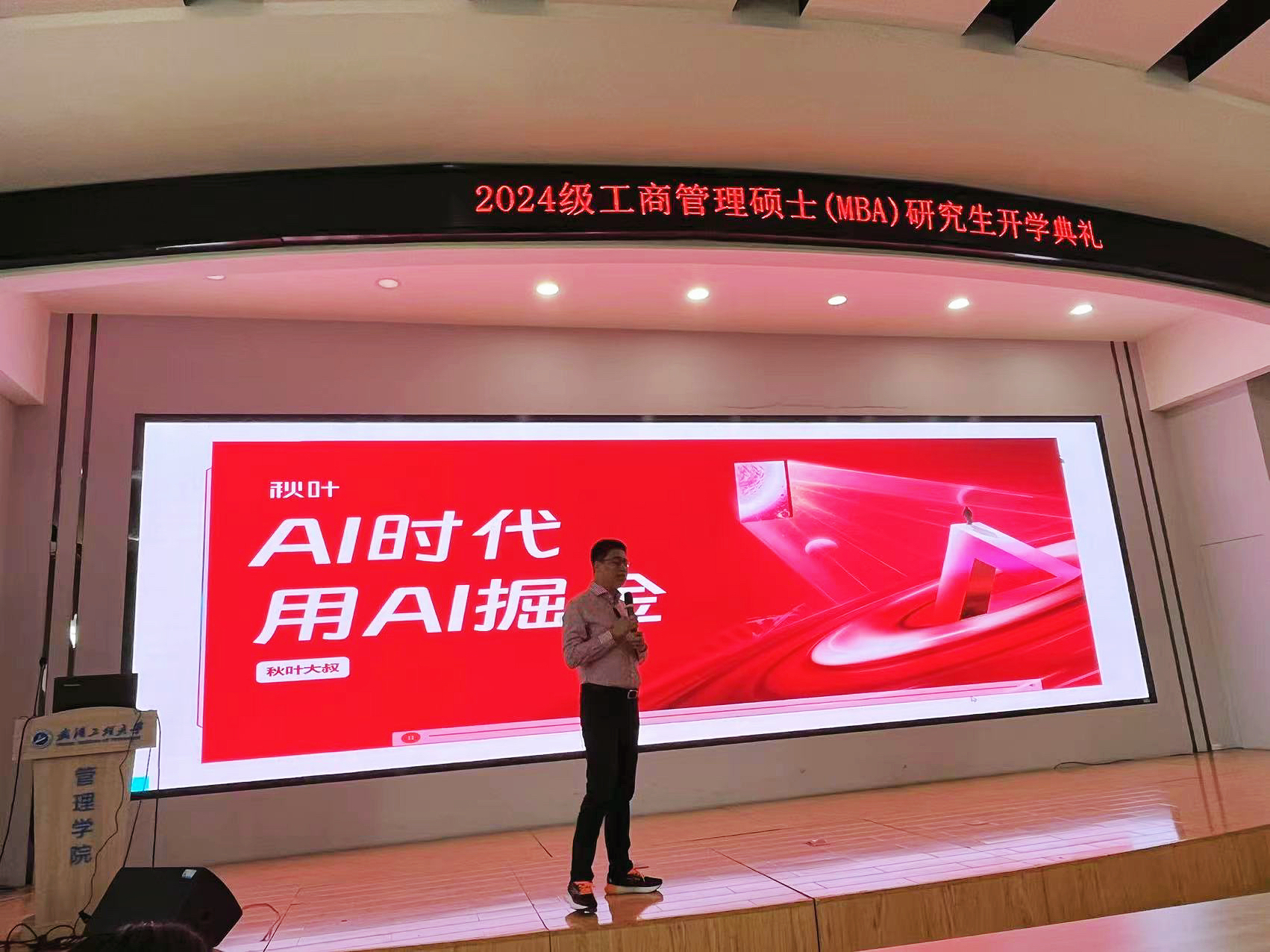 在入学教育环节,秋叶品牌创始人、304am永利集团副教授张志老师带来新生第一课《AI时代用AI掘金》主题讲座。张老师通过分享个人创业的奋斗历程和成功秘诀,向新生们传达了MBA学习的方向,激发同学们的学习热情。