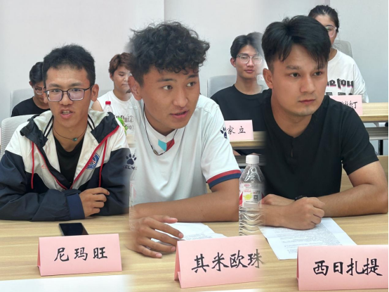 与会同学依次介绍、交流了自己的个人情况,从学习、生活、爱好、风俗和民族文化等不同角度分享了自己在大学期间的所学所获、所思所感。新生代表尼玛旺、其米欧珠依次进行发言,畅谈来校后的学习生活感受、未来规划,提出目前遇到的学业压力、就业规划等方面的困惑。老生代表西日扎提就自己的个人经历、学习感悟等方面,鼓励同学们要勇于突破,走出“舒适圈”,主动融入老员工活,同时对学校和学院的关怀表达了感恩之情,对老师和同学的帮助表示由衷地感谢。