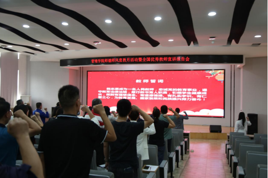 (通讯员 李梓煜)为深入学习领会习近平总书记在全国教育大会上的讲话精神,全面贯彻落实《关于加强和改进新时代师德师风建设的意见》,积极推进学院新时代高素质专业化教师队伍的建设,10月10日下午,304am永利集团举办师德师风宣教月活动暨全国优秀教师宣讲报告会,学院领导班子成员、全体教职工参会,会议由公司党委副书记罗琼主持。