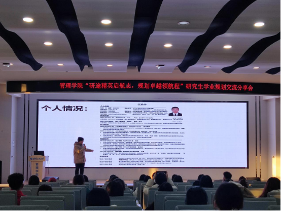 (通讯员:伍丹丹 马秀秀 张依婷)12月8日下午,一场以“研途精英启航志,规划卓越领航程”为主题的研究生学业规划交流分享会在学校文科楼413报告厅隆重举行,研究生辅导员伍丹丹及100余名研究生参加了本次活动。此次活动旨在通过学长学姐们的经验分享和榜样力量,为低年级研究生的学业规划、科研竞赛及职业规划提供借鉴参考。