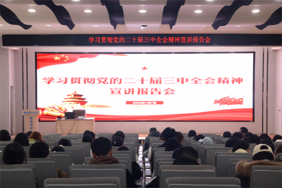 (通讯员 李梓煜)1月7日下午,学校“党的创新理论宣讲团”第十一组组长、公司党委常委於世为在文科楼413报告厅宣讲党的二十届三中全会精神。报告会由公司党委书记左辉主持。