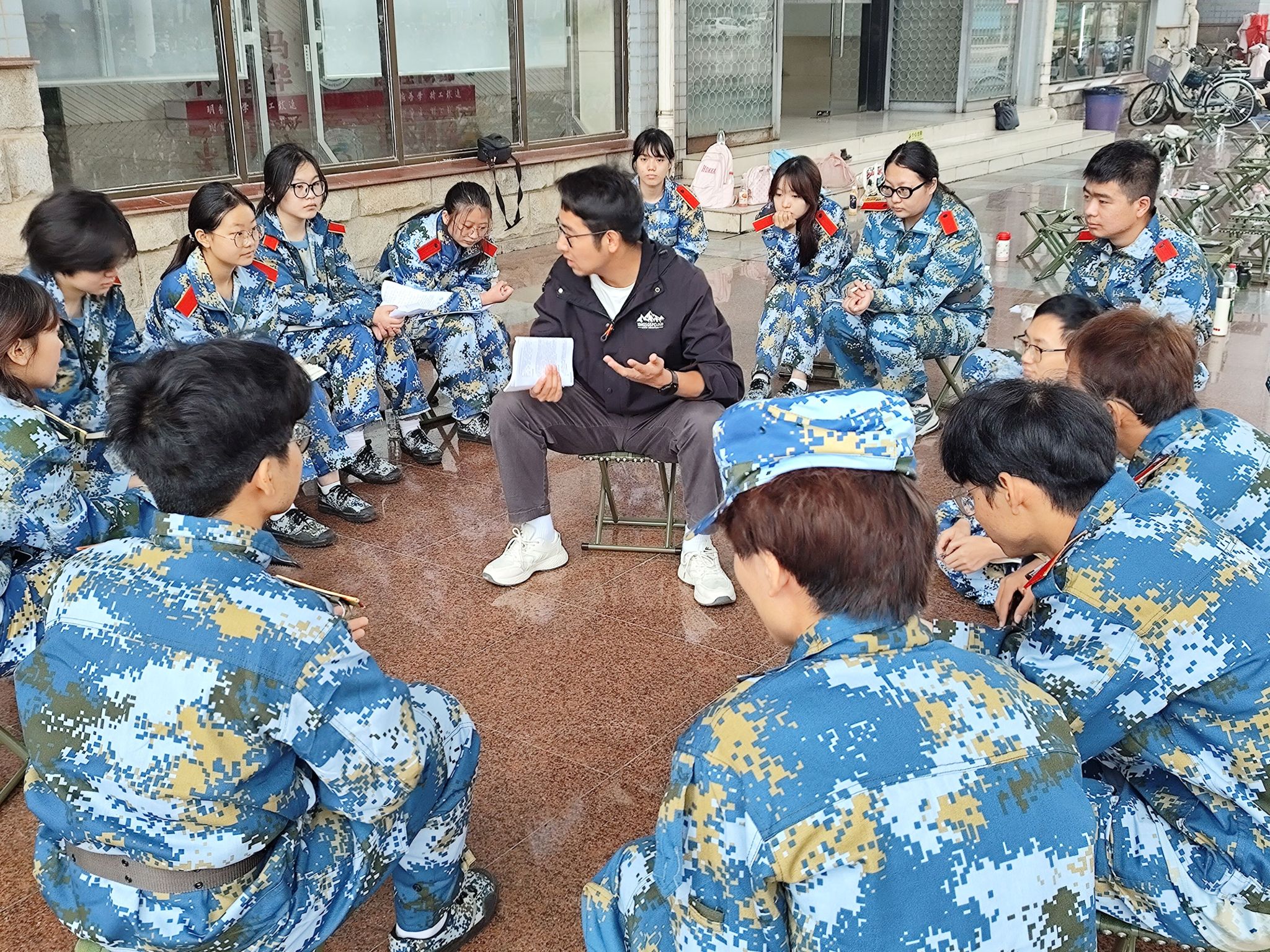 军训期间,辅导员郭祥远走进军训现场,通过现场讲述的方式,向观训员工宣传铸牢中华民族共同体意识知识、安全教育知识等,引导员工树立正确民族观,增进各民族员工之间的交往交流交融,争做民族团结的践行者。