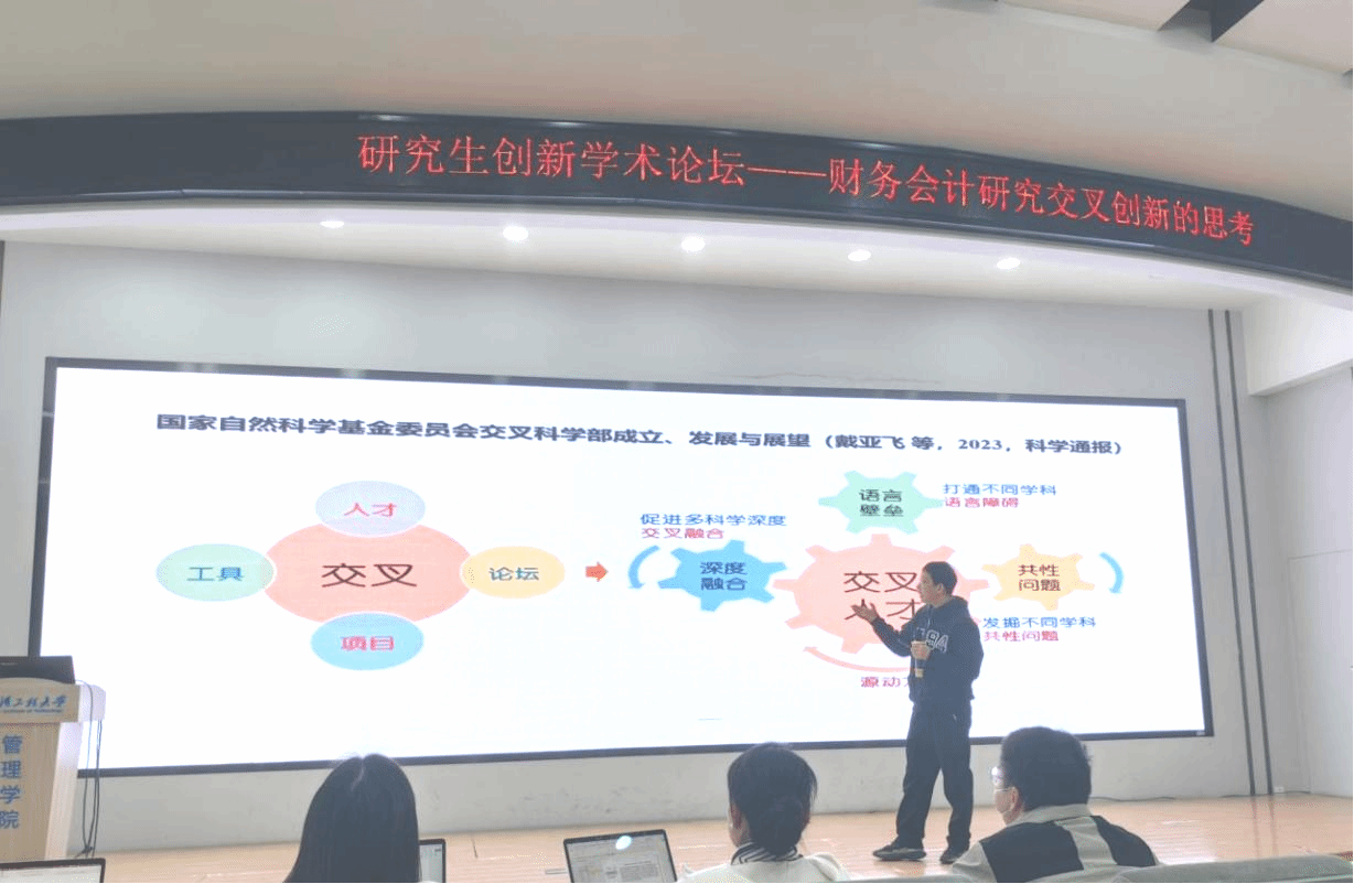 李青原教授以“财务会计研究交叉创新的思考”为题,开宗明义地指出当今会计研究的前沿在于“交叉融合”。李教授强调,高质量的研究应源于对现实世界的深刻洞察,鼓励师生从中国独特的制度背景与宏观经济事件中寻找“首要重要”的真问题。
