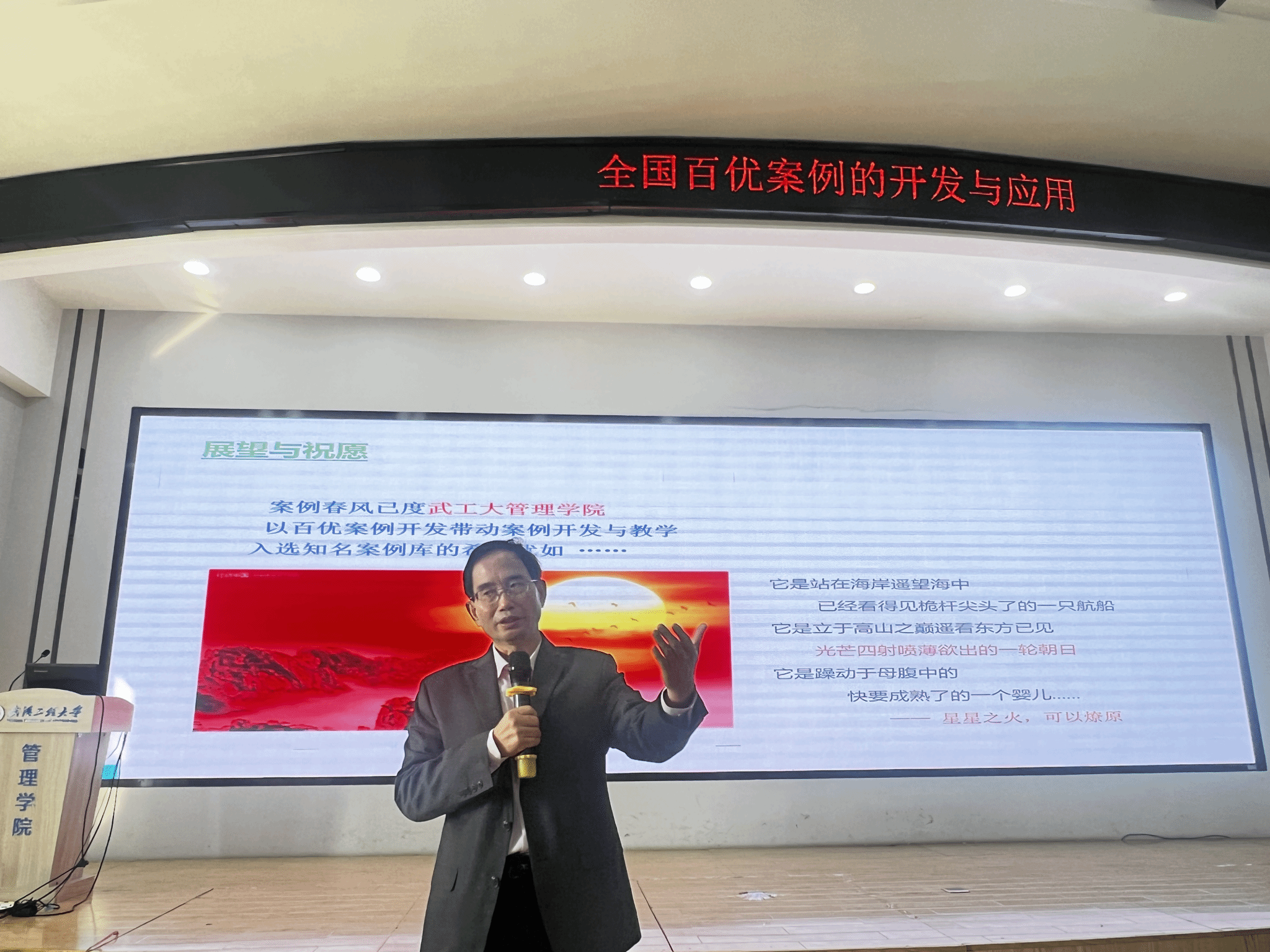 20日第一场在文科楼413举行,中南财经政法大学郑耀洲副教授率先带来“全国百优案例的开发与应用”主题报告,郑教授系统梳理了“研究—开发—教学—服务”四位一体的案例建设路径,并分享对葛洲坝集团、百果园等企业的调研经验。
