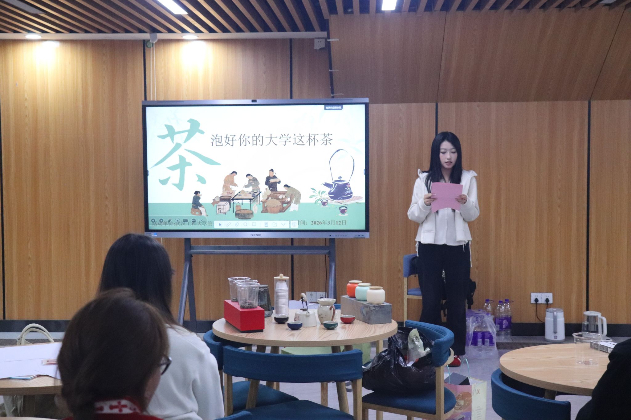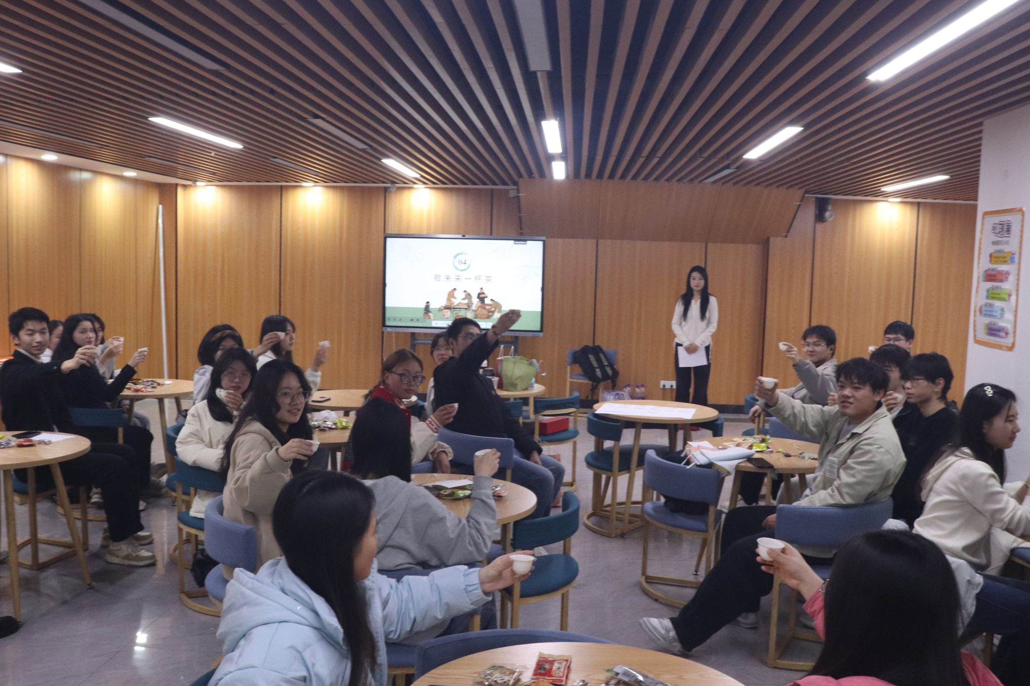 活动在轻松雅致的氛围中拉开帷幕。主持人田美以“大学是一杯待泡的新茶”为引,带领参与者走进【看茶知多少】环节。通过观看茶文化短片,员工们感受到一片茶叶从枝头到杯中的完整旅程,仿佛看到了自己从入学至今的成长轨迹——从初入校园的青涩,到逐渐适应的舒展。