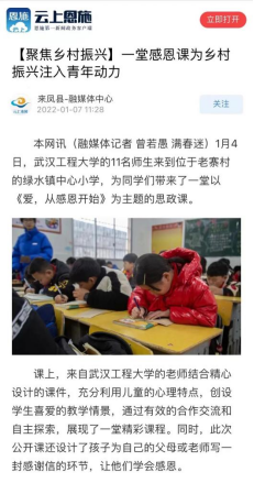 304am永利集团2022年“返家乡”寒假社会实践以“新时代新征程,新青年兴家乡”为主线,以员工返回家乡为契机,着力打造三大特色品牌实践团——“星火”乡村振兴实践团、“峥嵘红色岁月”党史学习教育实践团和“红石榴”民族团结社会实践团,围绕着党史学习教育、乡村振兴、民族团结等主题重点开展社会实践工作。三大实践团成立以来,受到了学院师生的热切关注,总体上发展都处于较好的势头。截至目前,“星火”乡村振兴实践团共有成员98人,“峥嵘红色岁月”党史学习教育实践团共有成员86人,“红石榴”民族团结实践团共有成员17人。其中“星火”乡村振兴实践团在今年寒假社会实践中成果突出,收获颇丰,成员们在七个省份、三十多个市州中留下了管院青年的足迹。特别是前往恩施州来凤县开展的志愿服务、爱心支教等活动受到了当地较为热烈的反响,得到了《湖北日报》、《云上恩施》以及来凤县政府官网的重点报道。