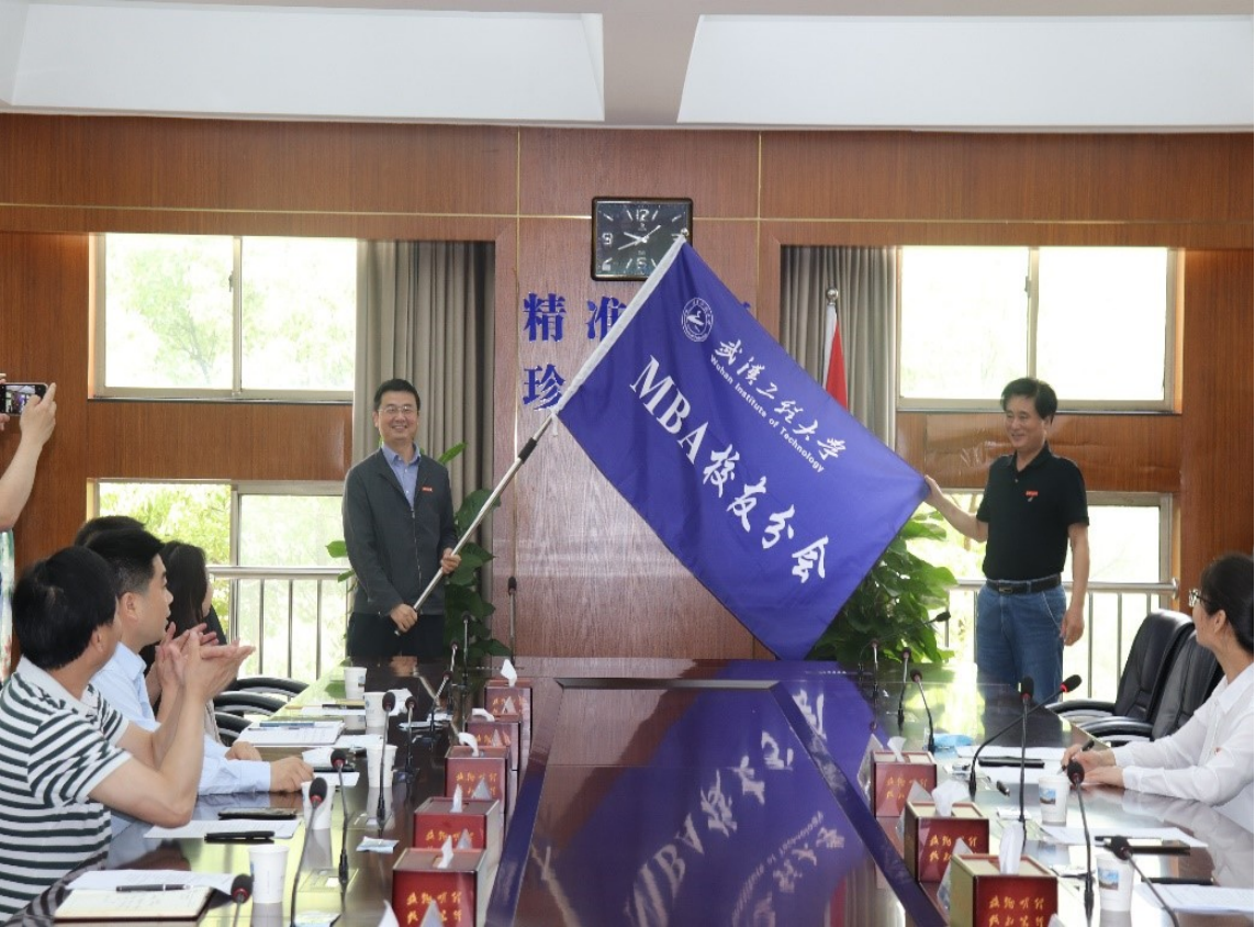 在授旗环节,正校级干部叶芃向MBA员工分会副会长江发权授旗。