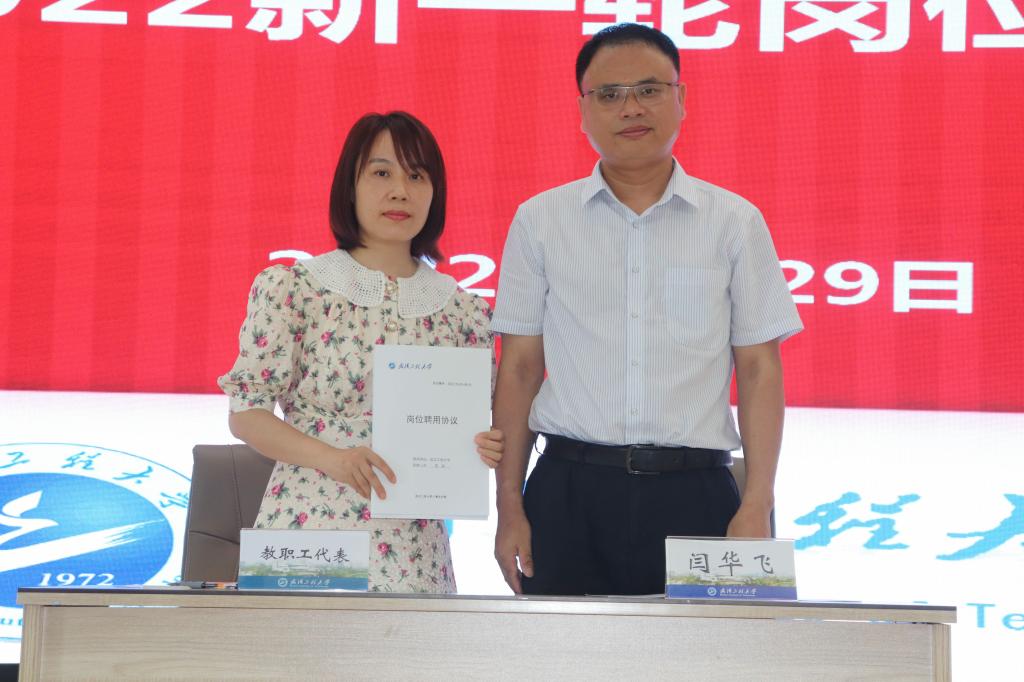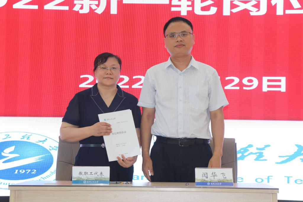 签约仪式上,经理闫华飞宣读了《关于2022年新一轮岗位聘任的决定》,并代表学院与各级各类岗位受聘代表签订了岗位聘用协议。