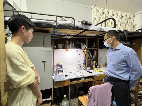 会后,李义伟带领全体辅导员深入员工宿舍、自习室走访巡查,详细了解员工的学习生活情况,并重点强调安全、作息、纪律、文化建设等方面的注意事项。希望同学们严格遵守学校疫情防控规定,在日常生活中注意做好个人防护,加强宿舍内务的整理,营造一个健康、舒适、温馨的生活环境;走出宿舍、走向操场、刻苦学习,以饱满的精神状态度过珍贵的大学时光。
