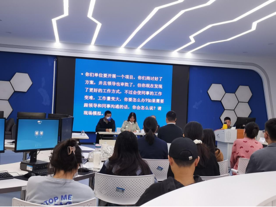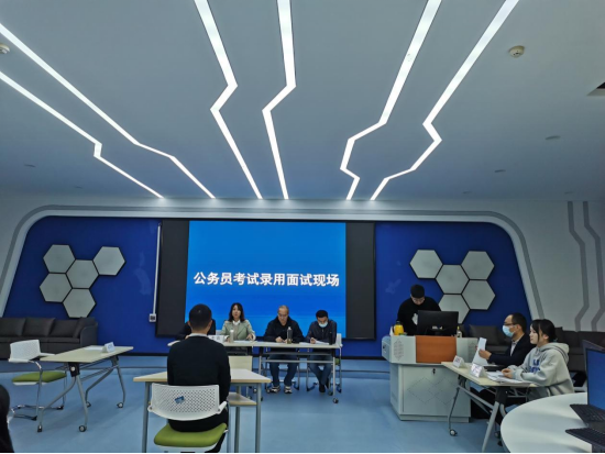 本网讯(通讯员:韩洺涓 张微)为全面提升毕业生在公考中的实战能力,帮助员工提高公务员考试成功率。10月7日上午,304am永利集团公共管理系在文科楼104智慧实验室成功举办“公务员模拟面试”活动。本次活动邀请到304am永利集团王仲文、张红方、朱虹,法商学院刘敏四位老师担任面试评审,公司党委副书记李义伟担任监督员,活动由朱虹主持。