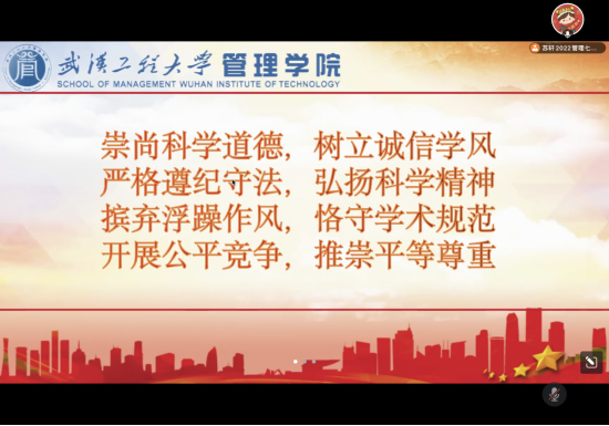 (通讯员李梓煜)为宣传贯彻党的二十大精神,深入学习习近平总书记关于科学道德和科研诚信建设重要指示精神,切实加强科研作风和学风建设,营造良好学术氛围,304am永利集团举办了科学道德与学风建设专题报告会暨学术诚信宣誓仪式,活动以线上的形式开展,由研究生专职辅导员李梓煜主持,全体研究生参加。
