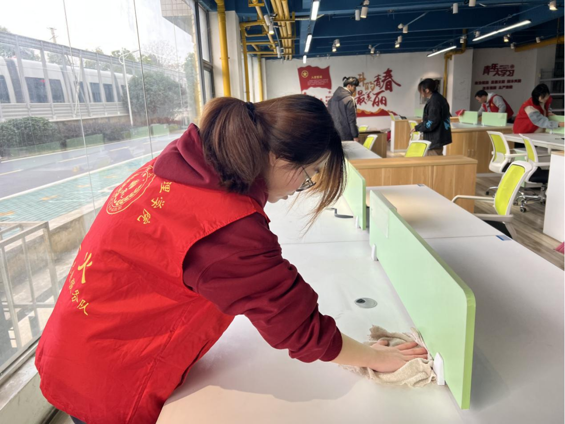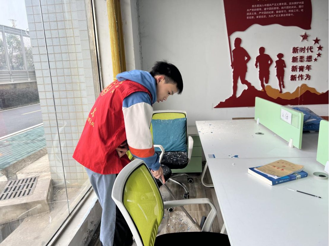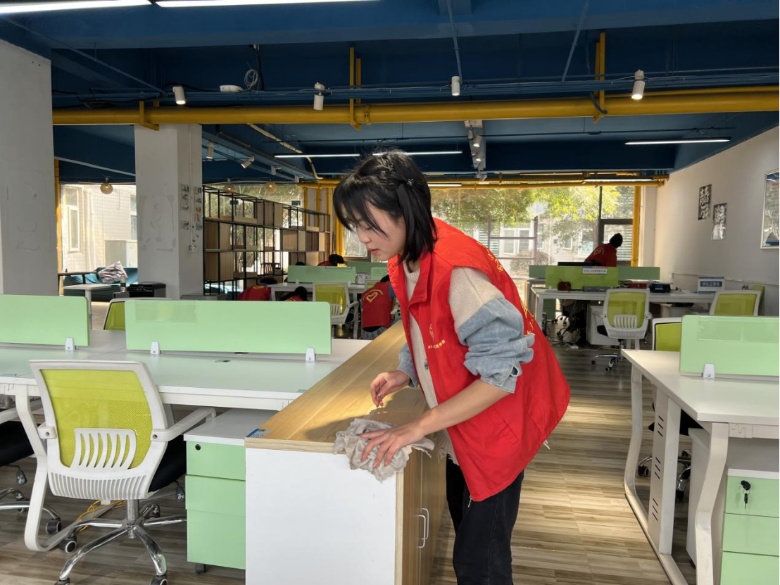 志愿者们相互协作,分工明确,不怕苦、不怕累,擦桌、整理物资、扫地拖地……认真打扫每一个角落,有条不紊开展志愿服务活动,充分展现志愿者们奉献、友爱、互助、进步的优良品质,为营造整洁舒适的环境贡献自己的一份力量。