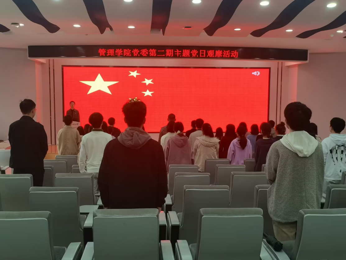 活动伊始,祝曦柏向大家介绍了本科生第四党支部的支部建设情况,接着带领大家奏唱国歌、重温入党誓词、学习党章内容,并汇报了本支部四月的党费收缴情况。