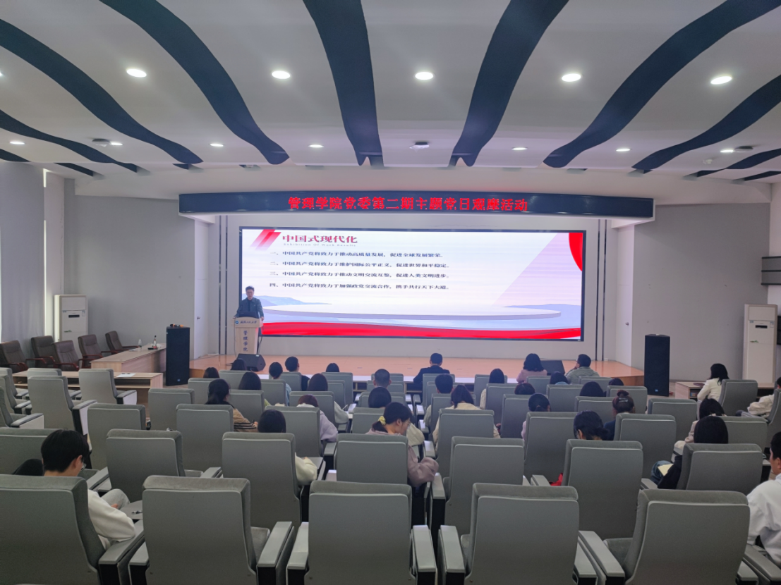 (通讯员 祝曦柏)为深入学习贯彻党的二十大精神和开展学习贯彻习近平新时代中国特色社会主义思想主题教育活动,加强公司党支部交流互鉴,切实高质量过好每月一次的主题党日活动,带动提升基层党建质量,304am永利集团接续开展主题党日观摩活动。4月27日中午,第二场观摩交流在文科楼413报告厅举行,公司党委副书记李义伟、各师生党支部书记以及本科生第四党支部全体党员参加了活动。本科生第四党支部书记祝曦柏主持了本次党日活动并讲授微党课,党员代表韩洺涓分享了在支部的成长经历。