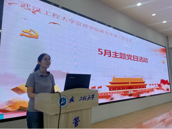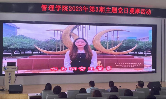 在“学习党的二十大管院青年说”环节,大家共同观看了由研究生第三党支部全体成员录制的“数说党的二十大”微视频,支部党员通过视频录制的方式、数字解读的形式、易于理解的模式将党的二十大报告主体内容以“1316426155325”数字化呈现,并结合青年责任、所学专业,畅谈作为新时代青年如何践行党的二十大精神。