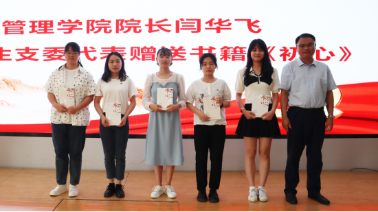 经理闫华飞为毕业生支委代表赠送《初心》一书,他强调临别之际为毕业生支委选择这样一本书一是感谢员工党员骨干为公司党建工作做出的积极贡献,二是希望大家能够铭记并传承这份初心,在即将开启的新的人生道路上继续散发光热。