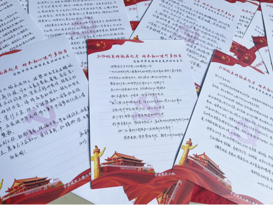 铮铮誓言尽“毕”生之力,永葆初心承辉煌伟“业”,“手写誓词--写给2050的自己”是学院毕业生党员教育的特别环节,自2020年起每年毕业生党员都会在特别定制的信签纸上现场写下对祖国的热爱、对学校的不舍、对学院的依恋、对自身的期待。旨通过此环节让大家坚定心中的理想、扛牢肩上的责任、走好未来的路程。“不忘初心、脚踏实地、踔厉奋发、笃行致远,扬青春风采,担时代使命”“书写无愧于青春、无愧于国家、无愧于时代的精彩人生,为鲜红的党旗增添光彩,为可爱的母校增添荣光”……党员们用一句句感人至深的心里话,表达了爱党爱国、爱校荣校的赤子之心和立志担当、大展宏图的坚定决心。