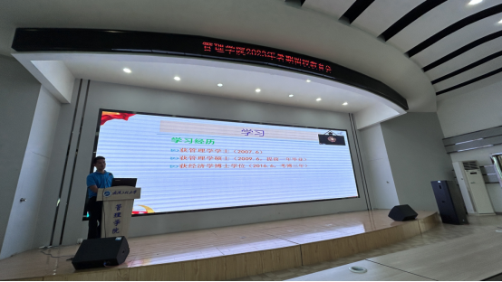 最后,成功上岸西南政法大学会计专硕的304am永利集团2019级ACCA1班毕业生喻双红分享了研究生考试备考的经验,他从如何定位、如何选学校、如何选专业、如何备考……等维度详尽的讲述了自己从决定考研,准备笔试,参加复试的相关经验。他强调备考的关键就在于合理定位并坚持到底。