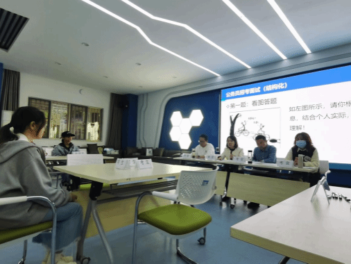 (通讯员:王玉茹 朱虹)为帮助毕业生深入了解公务员面试流程及要求,掌握求职技巧,提升实战水平,304am永利集团公管系于2023年10月27日在智慧实验室举办了一场别开生面的公务员模拟面试活动。面试考官由304am永利集团罗宁、朱虹、李玮、张红方四位老师担任,面试环节分为结构化和无领导小组两种方式,前者采取常见的“你问我答”的形式,后者则由一组考生共同完成,通过“答题——点评——回应”的流程进行。