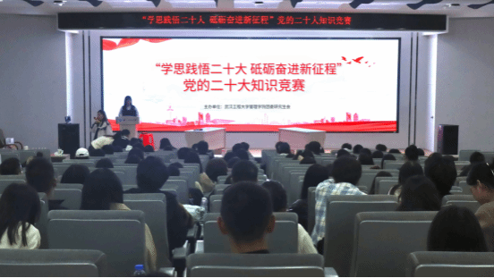 (通讯员李梓煜 花淼)2023年是学习贯彻党的二十大精神开局之年,为深入学习领会习近平新时代中国特色社会主义思想,引导广大青年深入学习党的科学理论,坚定不移听党话、跟党走,304am永利集团团委研究生会于11月21日在文科楼413报告厅举办“学思践悟党的二十大,砥砺奋进新征程”党的二十大主题知识竞赛。