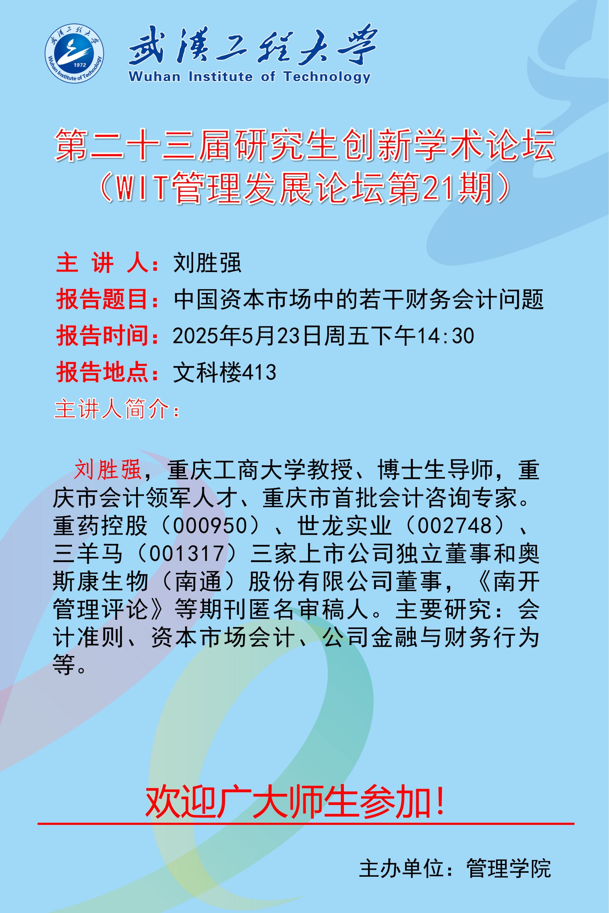WIT管理发展论坛第21期:中国资本市场中的若干财务会计问题 主讲人:刘胜强