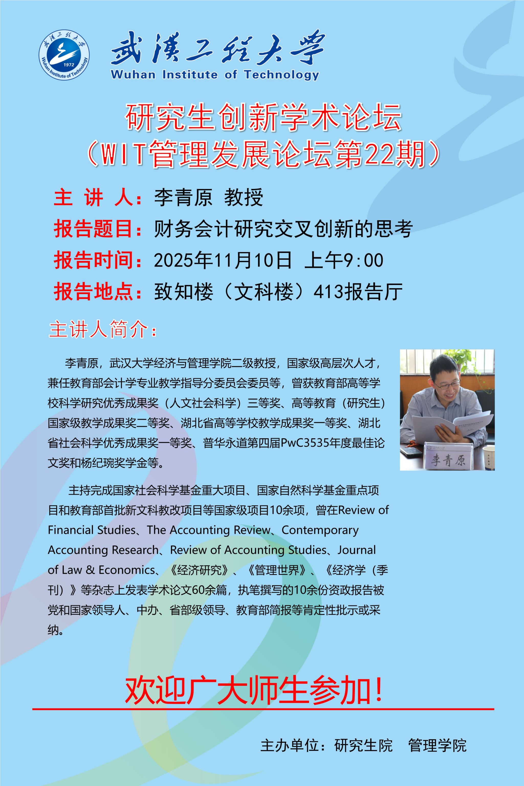 WIT管理发展论坛第22期:财务会计研究交叉创新的思考 主讲人:李青原