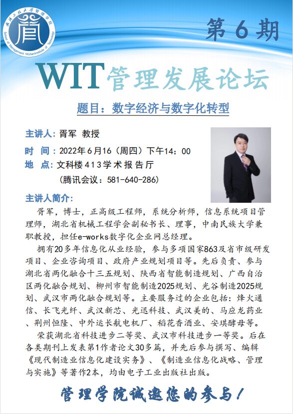 WIT管理发展论坛第6期:数字经济与数字化转型 主讲人:胥军