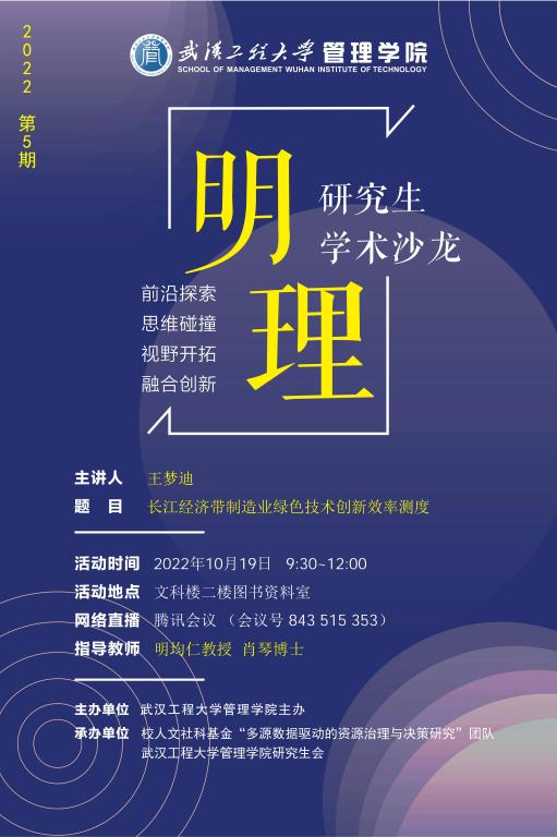 WIT304am永利集团“明理”研究生学术沙龙第五期:长江经济带制造业绿色技术创新效率测度