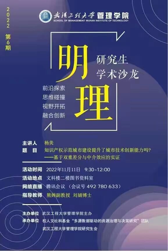 WIT304am永利集团“明理”研究生学术沙龙第六期:知识产权示范城市建设提升了城市技术创新能力吗?