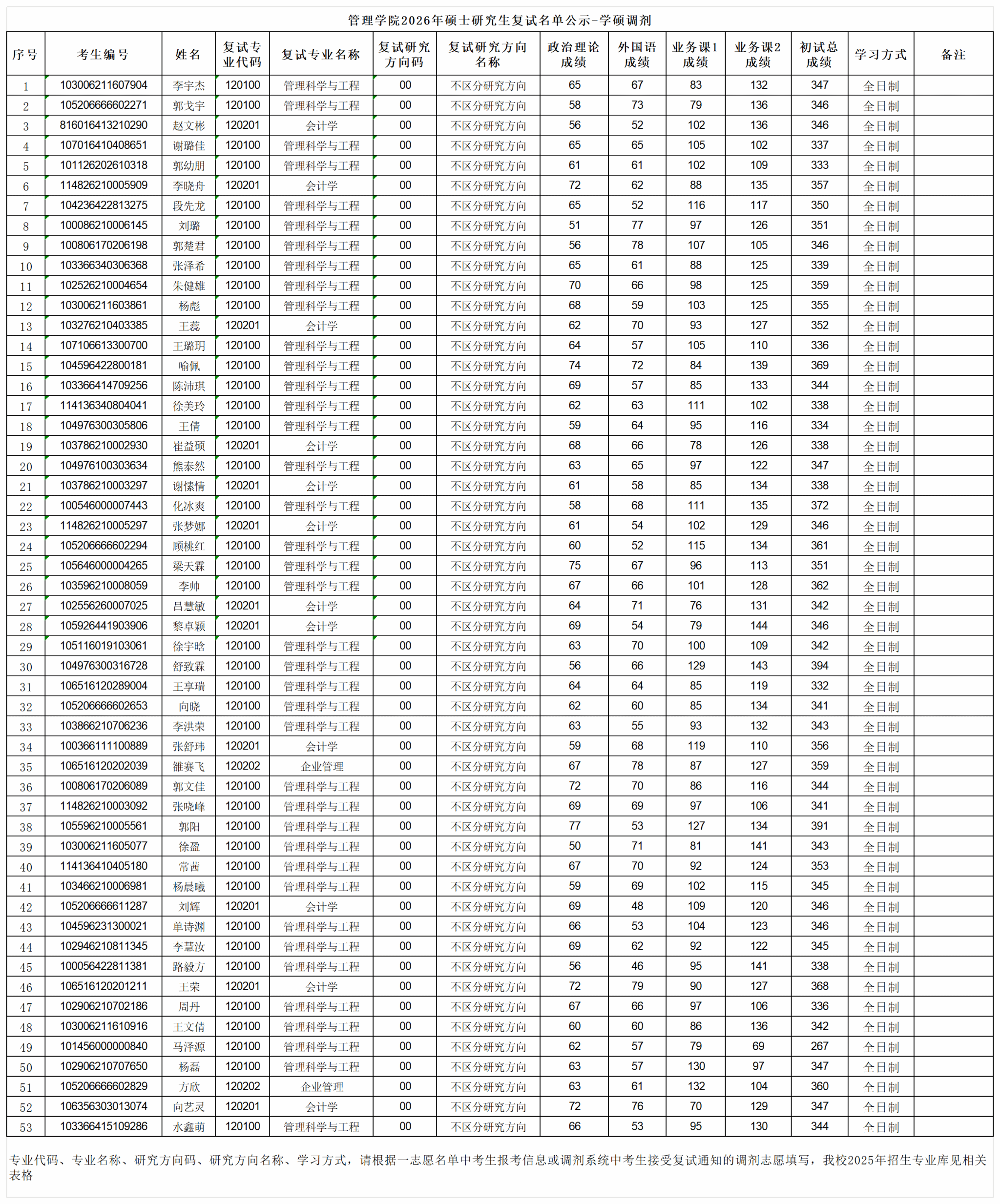 304am永利集团2026年硕士研究生复试名单公示——学硕调剂
