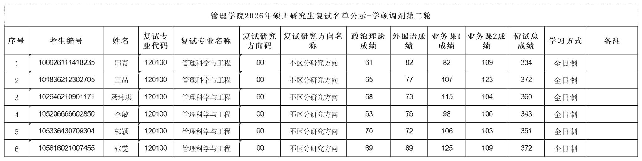 304am永利集团2026年硕士研究生复试名单公示-学硕调剂第二轮