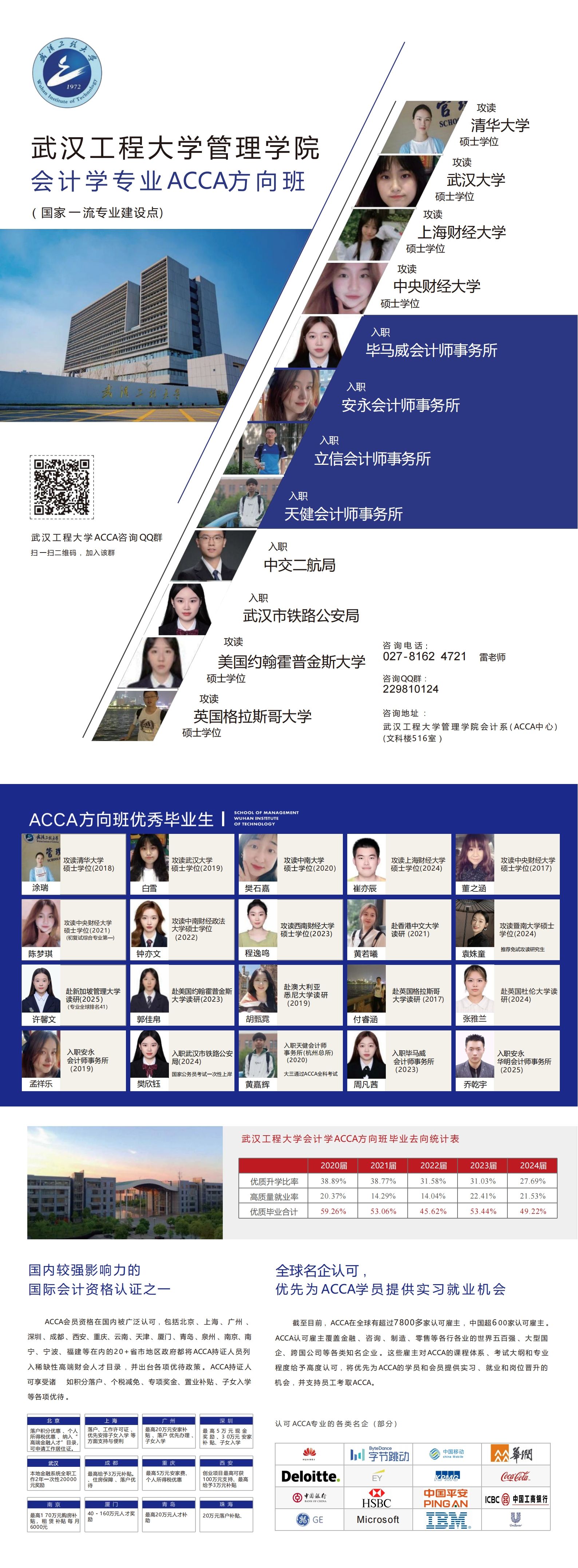 本专业方向以会计学基本理论和技能为基础,融入国际最新的会计、审计和财务管理等专业知识,嵌入ACCA全球统考的全英文专业课程,且均有中文课程做引导;本专业团队力量雄厚,ACCA课程授课教师均具备国际化教育背景和较扎实ACCA专业知识和经验;同时拥有一个行动力较强的教学管理服务团队,为员工提供深入的学习支持和心理引导;此外,还为员工提供了海外留学服务、就业力提升项目、终身职业发展支持等专属的超值资源;这些都极大地助力了员工统考通过率的提高,目前该方向班的毕业生F阶段9门课程通过率达到80%左右,ACCA全科通过率在15%左右。